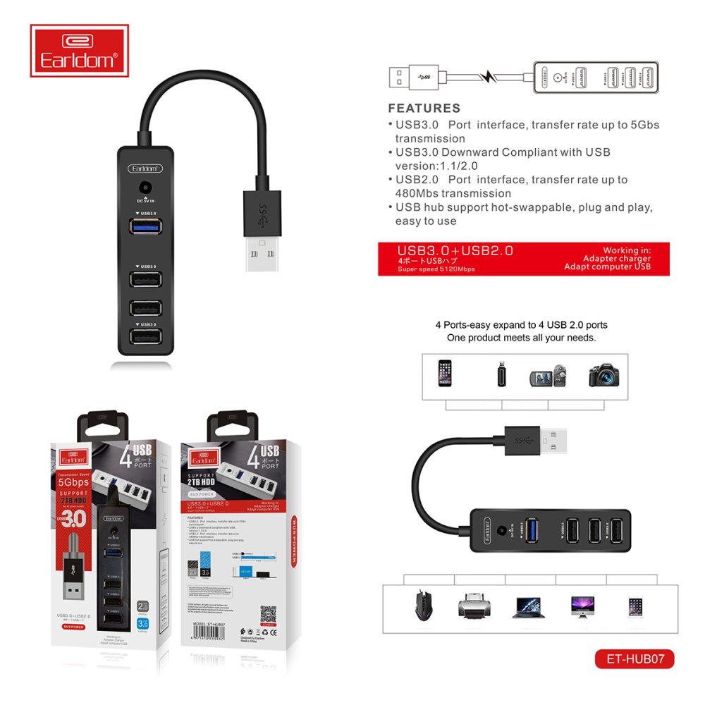1.Fonksiyon: 4 in 1 USB OTG HUB, Tak ve çalıştır, 1*USB 3.0 ve 3*USB2.0 portu. USB destekli tüm cihazlarda kullanılabilir, PC/Tablet/Akıllı telefonlarda kullanılabilir, 1TB’dan büyük kapasiteye sahip harddisklerde kullanılmaz.