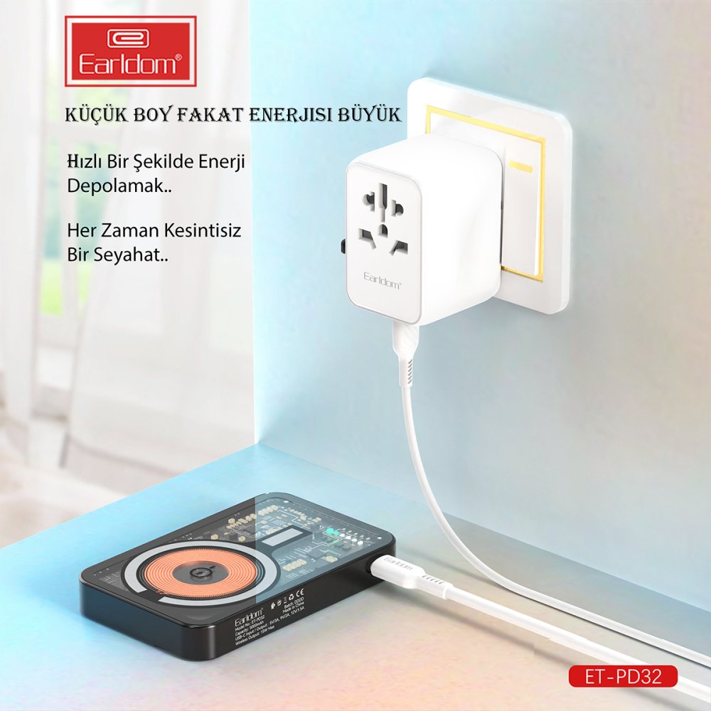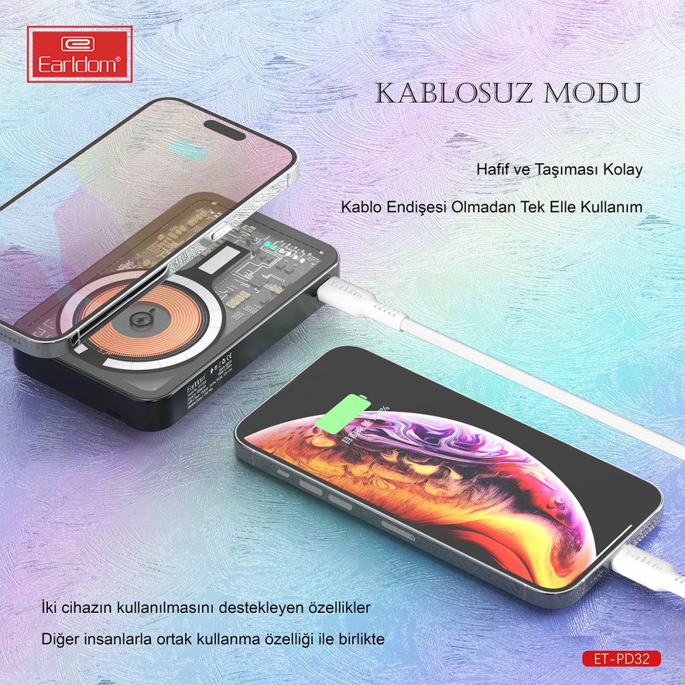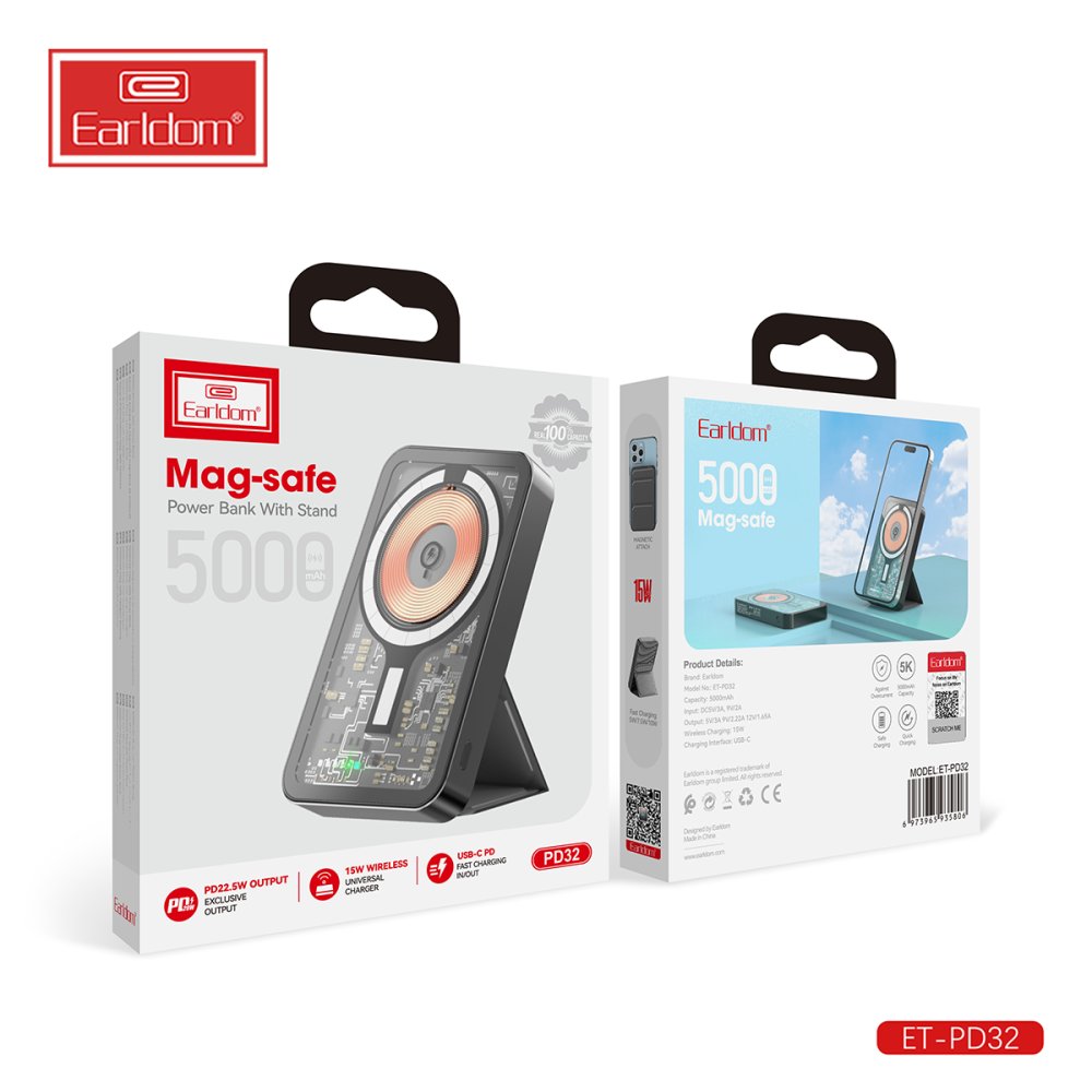 Earldom PD32 5.000 mAh 22.5W Kablosuz Şarjlı Standlı PD Hızlı Şarj Powerbank