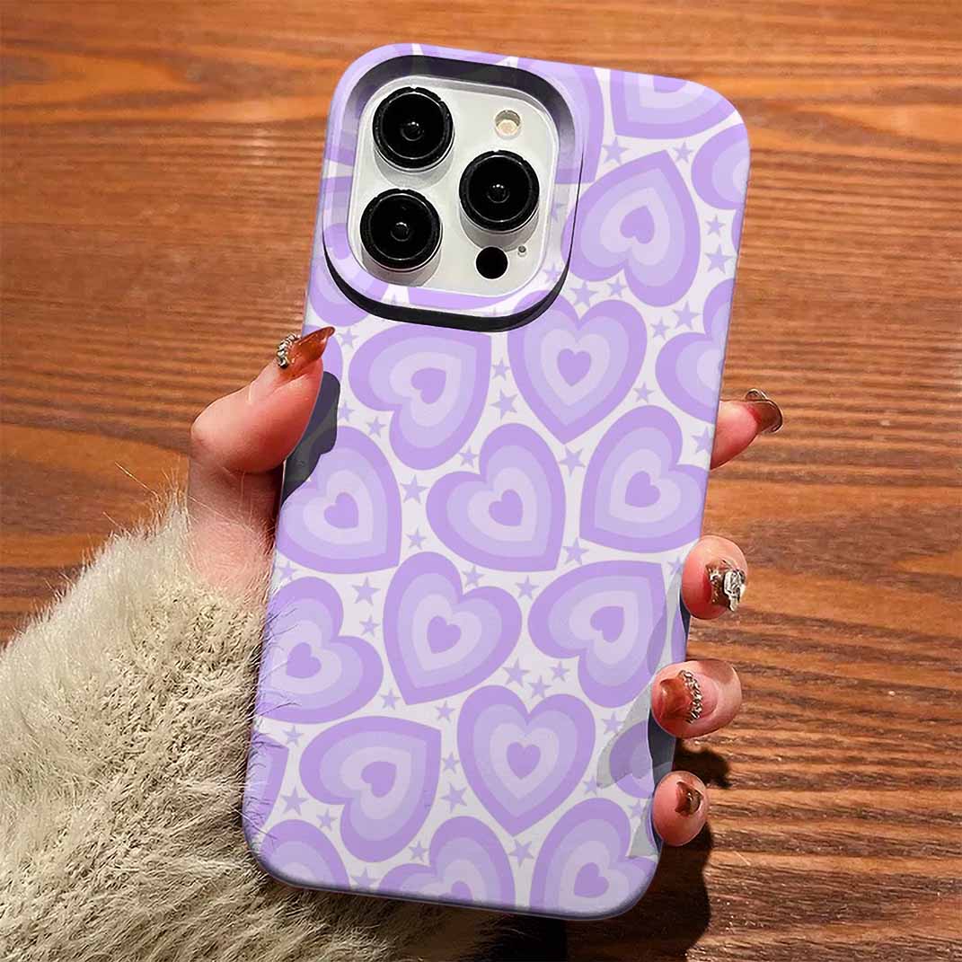 Lila Minik Kalp Retrosu Tasarımlı Silikon Telefon Kılıfı