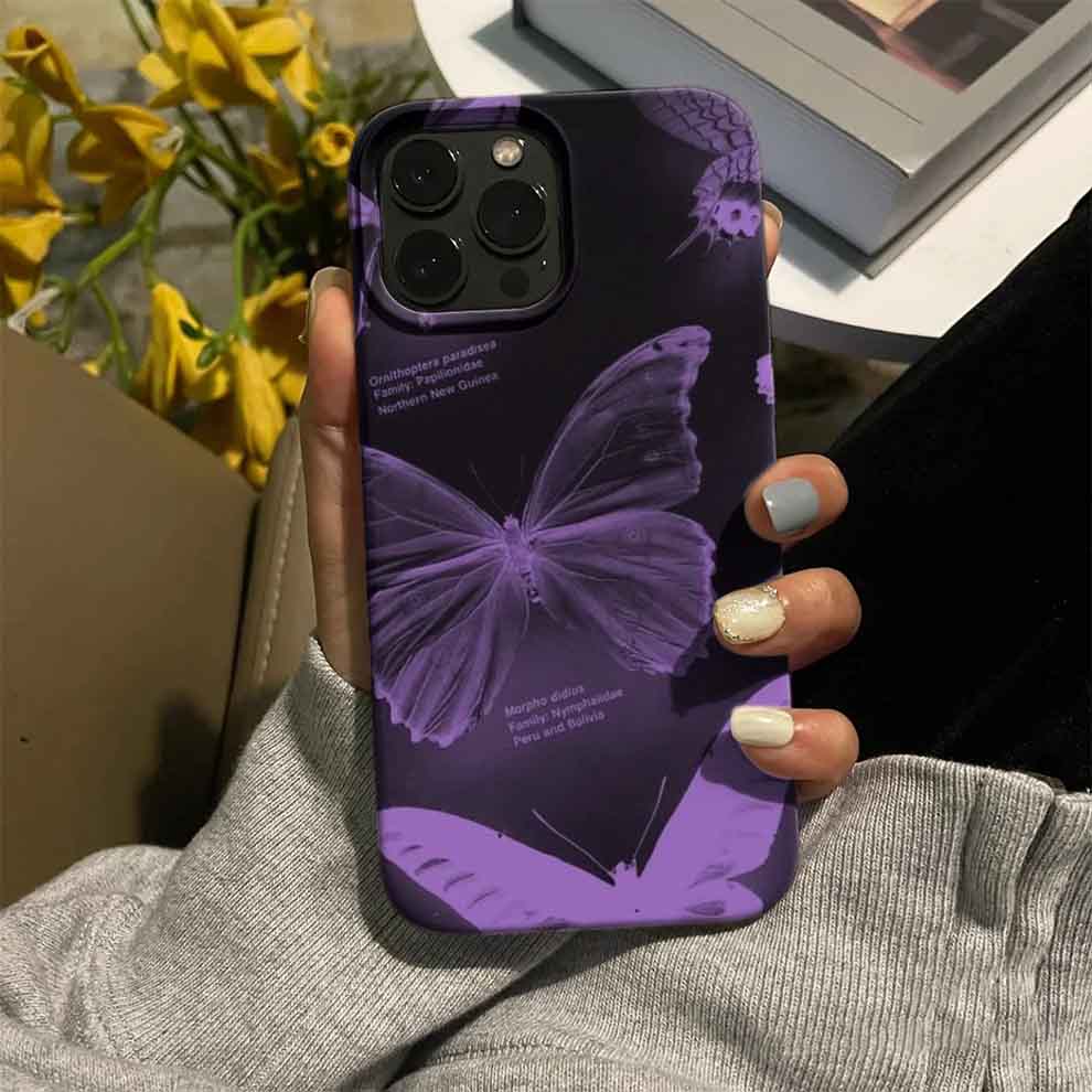 Mor Hologramlı Kelebek Baskılı Silikon Telefon Kılıfı