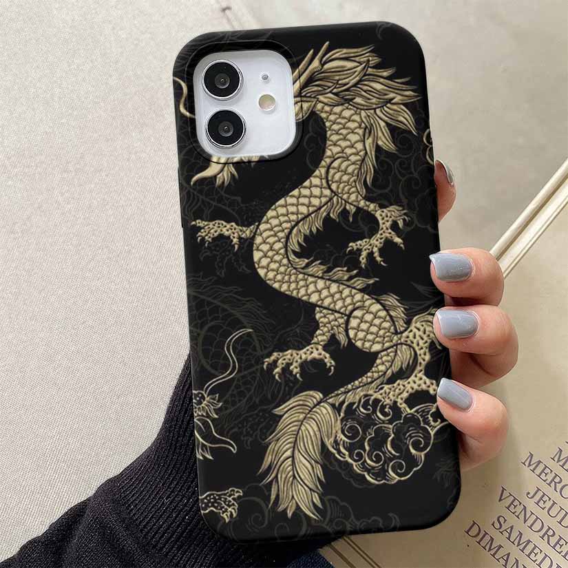 Sarı Motifli Ejderha Tasarımlı Silikon Telefon Kılıfı