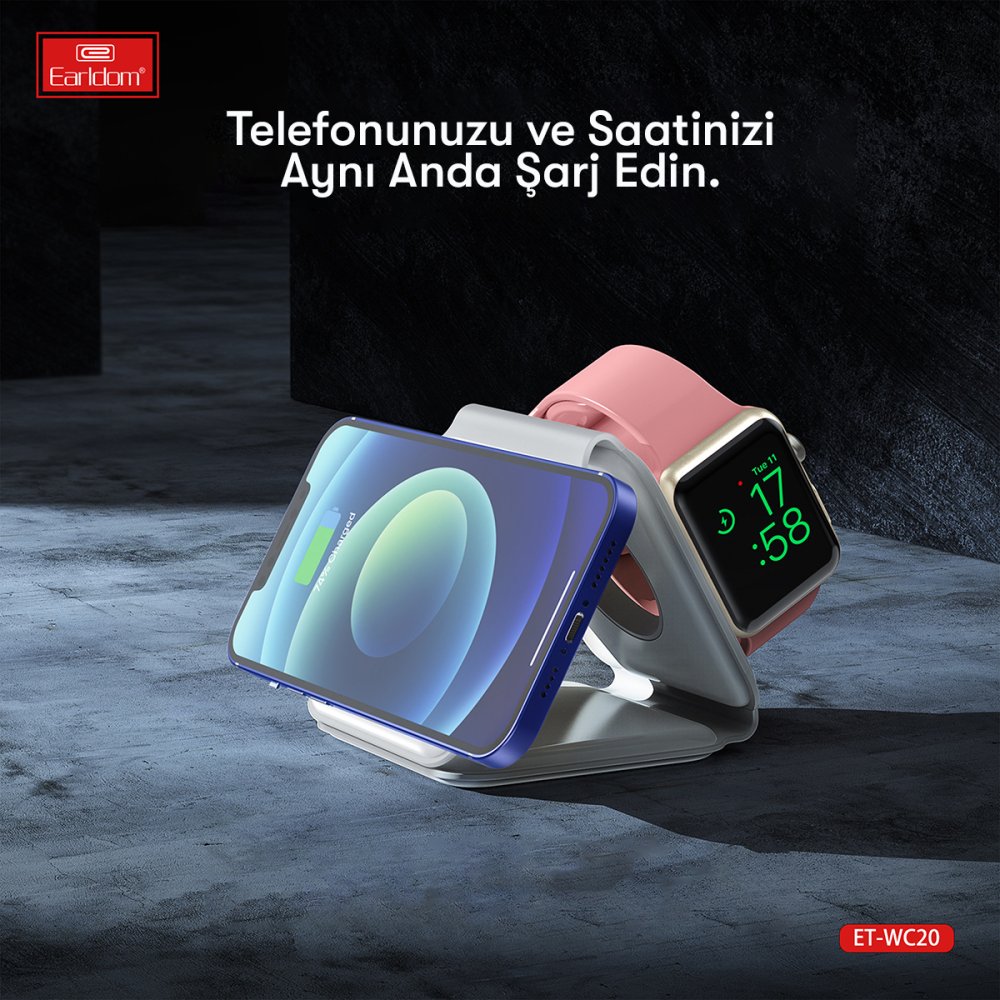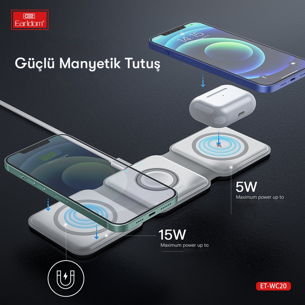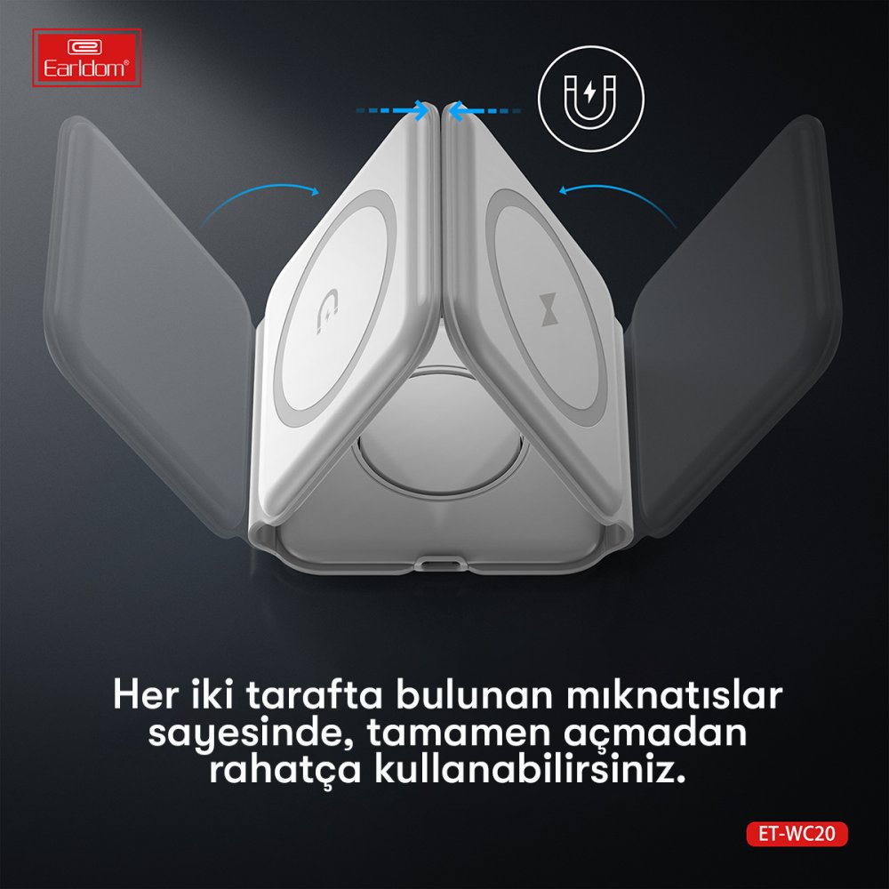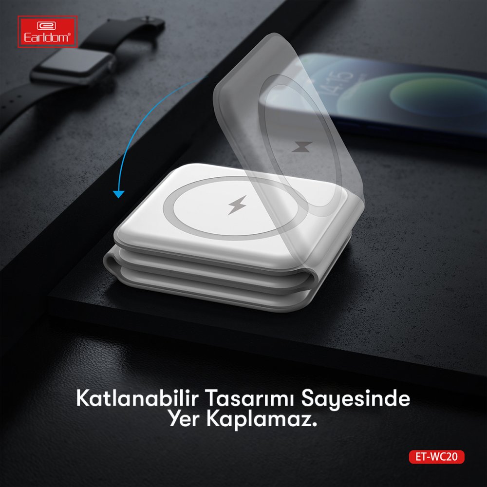 WC20 3in1 Katlanabilir Masaüstü Kablosuz Şarj Standı